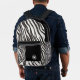Presenting a contemporary backpack with a sleek and stylish design in Black And White. Embrace the minimalist allure of African zebra stripes subtly incorporated into its pattern. A bold white monogram customisable name initial stands out against a contrasting black circle, adding a personalised touch to this chic accessory. Perfect for everyday use or urban adventures, this backpack effortlessly combines fashion and functionality. Elevate your style with this versatile piece that exudes sophistication and modern flair, making it an essential addition to any fashion-forward wardrobe.