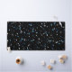 This desk mat features a trendy terrazzo pattern in white, grey, and blue shades on a black background. The colours are fully customisable by clicking on Edit design.