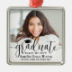 Commemorate the graduate's achievement with a custom graduation photo square metal Christmas ornament. The picture and text on this template are simple to personalise. Include the grad's name, school and class year, or any wording of your choice, such as a favourite inspirational quote, congratulations, thanks mum and dad, or other text. The simple modern design features a black mortar board cap, trendy script calligraphy, elegant classic typography, and one photo of your choice, such as a senior picture or image from the commencement ceremony. This ornament makes a unique and thoughtful graduation keepsake gift idea. Congratulations to the graduate!
