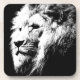Modern Trendy Black & White Pop Art Lion Head Template Elegant Square Hard Plastic Coaster