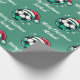 Modern Trendy Christmas Soccer Ball with Santa Hat Wrapping Paper