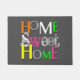 A modern grey background with colourful neon letters "Home Sweet Home". Stylish decoration for your home with trendy block typography design. Great gift for new home or housewarming party.