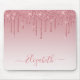 Modern Elegant Fashionable and Trendy Dusty Pink Rose Glitter Mouse Pad personalised with your Name. Stylish Script. Dripping Glitter with sparkles.