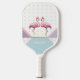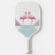 Modern Trendy Flamingo Pink Girly Personalised Name Pickleball Paddle features  pink flamingos on an abstract background and personalised with your name in modern white script typography. Perfect for personalised birthday gifts, best friends, Mother's Day, Christmas and holidays. Designed by © Evco Holidays www.zazzle.com/store/evcoholidays