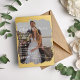 Introducing the perfect addition to your luxurious and modern wedding - the faux gold frame photo design. With its simple yet elegant script and stylish typography, this design is the perfect way to display your romantic couple photos from your special day. The golden photo frame adds a touch of luxury to any black and white photo, bringing a sense of sophistication to your wedding memories.