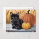 Modern Trendy Halloween Pumpkins and Black Cat Postcard
