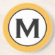 Modern monogram initial design features a trendy bright mustard yellow design with a black and white monogram medallion in classic block typography for a cool, unique yet simple stylish look.