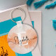 Unlock personalised style with our Modern Trendy Peach Fuzz Watercolor Chic Monogram Keychain! The design features a Peach Fuzz Watercolor Splash background, setting the stage for a chic monogram personalised in bold white text. Add an extra touch of elegance with the full name written in stylish script in black. This keychain is the perfect gift for various occasions, from bridal showers to birthdays and beyond. Elevate your accessory game and make a statement with this trendy and personalised keychain.