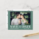 Modern Trendy Save The Date Photo Postcard with block script and calligraphy script combination. Eucalyptus Green