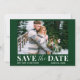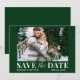 Modern Trendy Save The Date Photo Card with block script and calligraphy script combination. Forest Green.