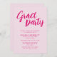 Modern Trendy Pink Brush Script Graduation Party Invitation