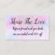 Reward your customers for bringing you new clients in this beautifully designed customer referral business card designed with a colourful abstract background in shades of pink, purple, and blue. Lists your company name and client referral reward on the back.