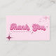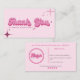 retro-inspired thank you card features a playful pink design with bold, nostalgic typography. Perfect for small businesses, the front showcases a vibrant “Thank You” message with twinkling star accents. The back is customisable with your logo, social media details, and a discount code to encourage repeat customers. Ideal for adding a fun, vintage touch to your brand’s packaging, this card helps you express gratitude while promoting future engagement. Perfect for boutiques, handmade shops, and creative entrepreneurs