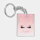 Modern Trendy Stylish Pink Glitter Lashes Key Ring