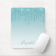 Modern Elegant Fashionable and Trendy Aqua Blue Glitter Mouse Pad personalised with your Name. Stylish Script. Dripping Glitter with sparkles.