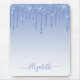 Modern Elegant Fashionable and Trendy Dusty Blue Glitter Mouse Pad personalised with your Name. Stylish Script. Dripping Glitter with sparkles.