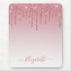 Modern Elegant Fashionable and Trendy Dusty Pink Rose Glitter Mouse Pad personalised with your Name. Stylish Script.