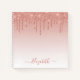 Modern Elegant Fashionable and Trendy Rose Gold Glitter Notebook personalised with your Name. Stylish Script. Dripping Glitter with sparkles.
