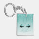 Modern Trendy Stylish Teal Glitter Lashes Key Ring
