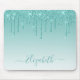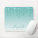 Modern Elegant Fashionable and Trendy Teal Glitter Mouse Pad personalised with your Name. Stylish Script. Dripping Glitter with sparkles.