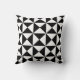 Modern geometric triangle pattern throw pillow in Black and White. Machine washable. Made in the U.S.A. Insert included. High quality cotton or polyester, available in three sizes: 16" or 20" square throw pillows and 13" x 21" rectangular lumbar pillows. Decorative accent pillows with geometric triangle trellis pattern covers in contemporary colours, perfect for the living room couch, family room or bedroom.