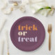 Add a modern touch to your Halloween festivities with our Trick or Treat paper plates. Featuring a stylish typographic design in rich eggplant, pumpkin orange, and cream, these plates capture the playful spirit of the season. Perfect for elevating your table while celebrating Halloween with chic, seasonal flair.