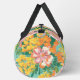 Modern Tropical Floral Pattern Personalised Name Duffle Bag Gym Bag features a colourful tropical floral pattern with pink, orange and yellow flowers on a turquoise background. Add your custom monogram, name or text for a fabulous gift for family and friends. Created by Evco Studio www.zazzle.com/store/evcostudio