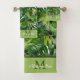 Modern Monogrammed Tropical Green Leaves and Palms, Bathroom Bath Towel Set design by Sandy Closs