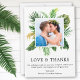 Modern Watercolor Tropical Greenery and Palm Leaves Love and Thanks Wedding Photo Thank You Card