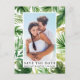 Modern Tropical Greenery Palm Leaves Save The Date Photo Engagement Announcement Postcard