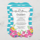 Start your tropical hawaiian bridal shower off right with our stunning pink hibiscus flowers & orange hibiscus flowers bridal shower invitations. Our stylish tropical bridal shower invitation features a chic fancy frame and is set on a ocean blue and white stripe background to really make invitation elements pop and has a coordinating back. Perfect for a contemporary beach wedding shower, destination bridal shower, summer bridal shower, spring bridal shower or a luau bridal shower.