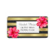 Tropical hibiscus on gold black striped background. An elegant and sophisticated design. Customized with your name and address details.