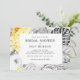 This modern tropical horizontal bridal shower invitation is perfect for your summer boho destination wedding. Designed with classic elegant yellow floral that pops out from grey coastal greenery, including palm leaf and fern. With all of these colourful watercolor flowers and grey leaves, you are sure to have the bohemian beach feel you're looking for.