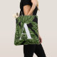 Modern Tropical Leaf Palm Plant Print Monogram Tote Bag