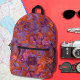 Modern Tropical Leaf Red Purple Monogram Design Printed Backpack