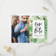 Modern tropical leaf script stylish wedding photo invitation postcard