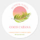 A clean yet colourful label for candles or soap featuring a logo with a tropical palm leaf and sunset design.