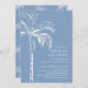 Stunning palm tree bridal shower invitation featuring a white sketched palm tree set on a blue background. Flip our wedding shower invite over to view a coordinating palm tree back for an extra special touch. Visit our shop to view our entire palm tree collection.