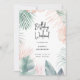 Elegant palm leaves and tropical foliage framing this elegant tropical beach themed invitation design in pastel shades of pink and green. On the back is room for your weekend itinerary and a custom QR code. Fully customisable text templates so you can use it for other events like a bachelorette party, bachelorette beach weekend, bridal shower or wedding.