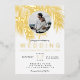 Modern simple real gold palm tree watercolor with simple typography, a trendy and tropical wedding theme on palm tree leaf. Add your couple photo on editable simple minimalist editable white background.