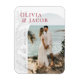 This Save the Date Magnet from the Leilani Collection features bright, bold colours and modern typography framing your engagement photo, sure to make a lasting impression on your guests! Personalise it with your details easily and quickly. Simply press the 'customise it' button to further re-arrange and format the style and placement of the text.