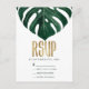Modern Tropical Swiss Cheese Leaf Gold RSVP Postcard
