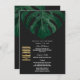 Elegant, modern, and simple green watercolor tropical beach swiss cheese monstera leaf on black background with faux printed gold foil typography summer wedding reception menu cards. This classic and sophisticated design is perfect for the classy, stylish, and trendy wedding reception. Personalise with your own menu on the front, along with your names and dates. Then customise the back with your monogram initial. All photo print design.