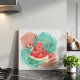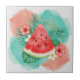 Modern Tropical Watermelon & Hibiscus Watercolor Ceramic Tile