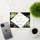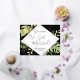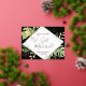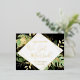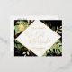 This tropical modern and elegant gold foil elopement postcard is an easy way of letting everyone know you eloped. "We Got Married!" along with the couple's name and elopement location and date are featured on the front in the foil colour of your choice. The text is highlighted by a foiled frame. Tropical leaves and ferns on a black background peak out from behind the frame. Gold foil splatters add a bit of sophisticated whimsy to the design. The back of the postcard has the wedding reception celebration details in black text.