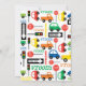 Start your baby boy baby shower off right with our modern truck & cars baby shower invitation. Our cute boys baby shower invitation features a white background with bright coloured cars in orange red, green & yellow with stop signs, traffic signs and lights with an side offset frame and a matching car truck back. Visit us at www.celebrateitinvites.com for a large selection of baby boy baby shower invitations