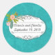 Modern Turquoise Chartreuse Damask Wedding Classic Round Sticker
