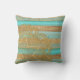 Modern Turquoise Faux Gold Glitter Stripes Pattern Cushion