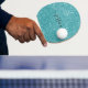 Modern ping pong paddle with a turquoise glitter background and a hand lettered script. Personalise with your name.