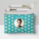 Elevate your style with this charming turquoise accessory pouch, featuring a playful faux gold polka dot pattern that pops against the vibrant background. Personalise the front with your own photo and name in cute, handwritten modern script, making it a truly unique accessory.